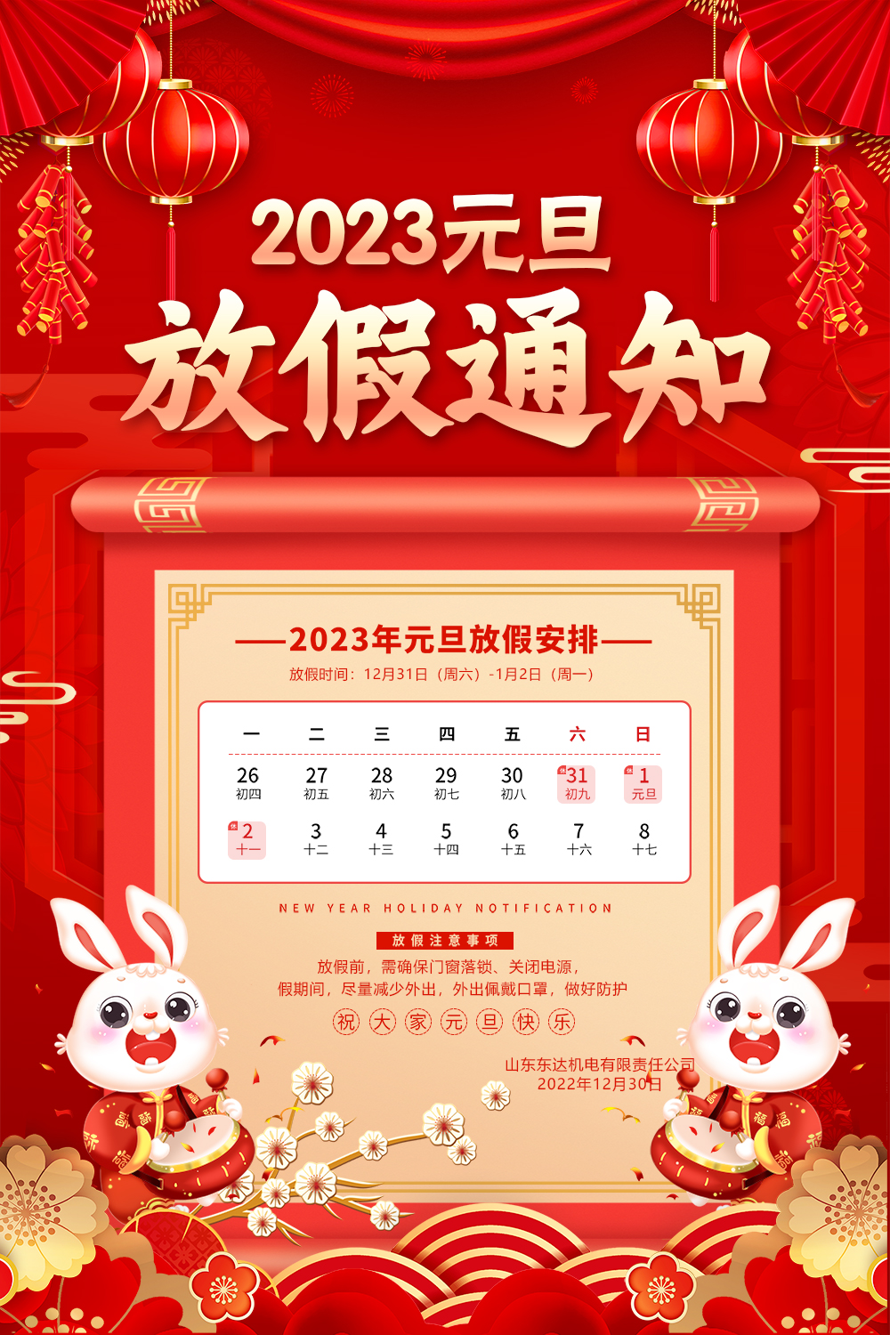 根據(jù)《國(guó)務(wù)院辦公廳關(guān)于2023年部分節(jié)假日安排的通知》,結(jié)合我公司的實(shí)際情況,現(xiàn)將我公司元旦假期具體安排如下: