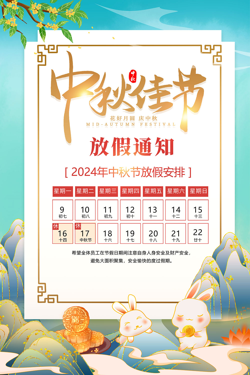 根據《國務院辦公廳關于2024年部分節(jié)假日安排的通知》,結合我公司的實際情況,現將我公司2024年中秋放假具體安排如下: