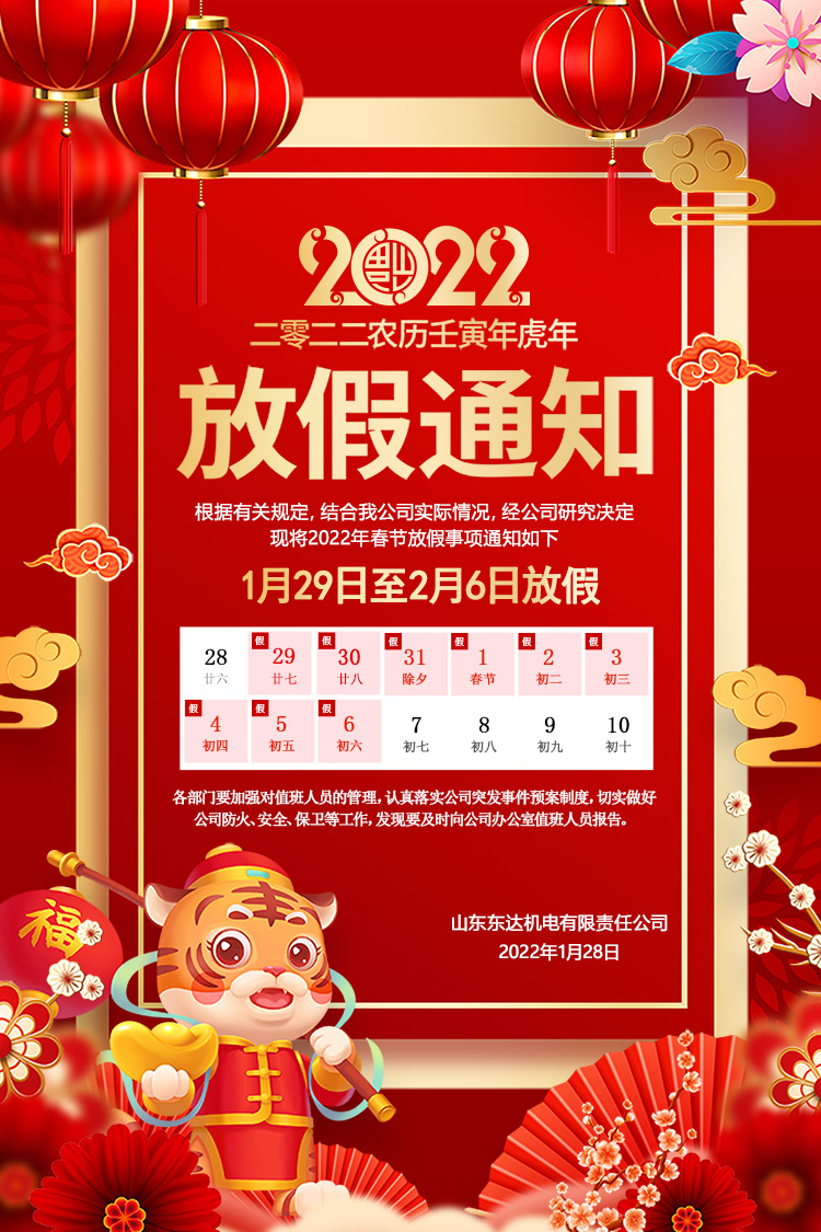 根據(jù)《國務(wù)院辦公廳關(guān)于2022年部分節(jié)假日安排的通知》,結(jié)合我公司的實際情況,現(xiàn)將我公司春節(jié)假期具體安排如下: