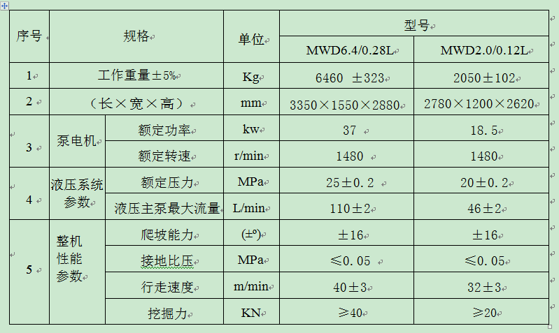 MWD2.0/0.12L煤礦用液壓挖掘機(jī)參數(shù)